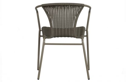 – Esstischstuhl für draußen – Geformt aus einem Metallrahmen und Rattansitz – Geeignet für den Innen- und Außeneinsatz – H 75 cm x B 56 cm x T 54 cm Die Outdoor-Kollektion der niederländischen Einrichtungsmarke WOOOD wird durch den bequemen Stuhl Weston bereichert. Das Metallgestell ist freundlich geformt und bietet einen sehr stabilen Sitz und bequeme Armlehnen. Die Sitzfläche besteht aus geflochtenem Rattan, der künstlichen Version von Rattan. So bleibt Weston auch in den kommenden Jahren stark und schön! Besonders praktisch: Der Weston-Stuhl ist stapelbar. Draußen Schützen Sie die Möbel vor starkem Regen, Nachtfrost und Winter mit einer Plastikfolie oder Schutzhülle. Wenn möglich, ist es besser, die Möbel im Haus zu überwintern. Material Rattan ist die synthetische Variante des natürlichen Rattans. Rattan ist ein sehr robustes Produkt und hat eine hohe Flexibilität, die eine lange Lebensdauer gewährleistet. Rattan wird in der natürlichen hellgelben Farbe oder einer anderen Farbe Ihrer Wahl gefärbt. Rattan hat die gleichen Eigenschaften wie Rattan, wie Verdickung, Unebenheiten und möglicherweise auffällige Farbnuancen. Abmessungen – Höhe: 75 cm – Breite: 56 cm – Tiefe: 54 cm – Sitzhöhe: 45 cm – Sitzbreite: 43 cm – Sitztiefe: 40 cm – Höhe der Armlehne: 65/20 cm – Dicke der Armlehne: ø 2 cm – Höhe der Rückenlehne: 75/30 cm – Dicke der Rückenlehne: 2/0,5 cm – Beinhöhe: 35 cm – Beinstärke: ø 2 cm – Abstand zwischen den Vorderbeinen: 50 cm – Abstand zwischen Vorder- und Hinterbeinen: 45 cm – Tragfähigkeit: 150 kg – Gewicht: 4,7 kg Wartung Durch die Nachahmung des Naturprodukts Rattan ist der Rattanartikel auch sehr natürlich geformt. Artikel aus der gleichen Serie haben übrigens eine hohe Form- und Farbechtheit. Reinigen Sie den Rattanartikel wöchentlich mit einem leicht feuchten, sauberen Tuch. Ein Gegenstand aus Rattan braucht keine zusätzliche Behandlung oder Schutz. Lieferung Der Artikel wird in einem Paket zu je vier Stück geliefert. Um harte Böden in Innenräumen zu schützen, legen Sie Filzgleiter auf die Unterseite der Beine.