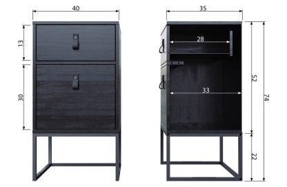 Der Zola Nachttisch mit Schublade und Tür tiefschwarz[fsc] ist Teil der Kollektion WOOOD und passt in jedes Schlafzimmer. Der moderne Nachttisch ist aus Metall und Kiefernholz. Sowohl das Metall als auch das Holz sind schwarz lackiert. Der Nachttisch Zola hat eine Höhe von 74 cm, eine Breite von 40 cm und eine Tiefe von 35 cm. Der Rahmen hat eine Höhe von 22 cm. Der Zola Nachttisch wird als Bausatz geliefert und ist mit Hilfe der mitgelieferten Montageanleitung einfach zu montieren.